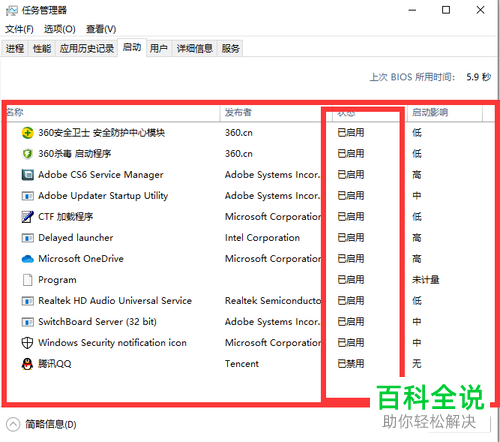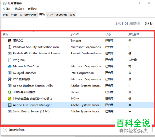 4. 我们可以看到开机自启动的软件以及自启动对电脑的影响。