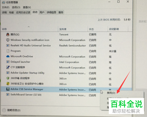 4. 我们要禁用其中的开机启动项的话,右击弹出窗口选择“禁用”。