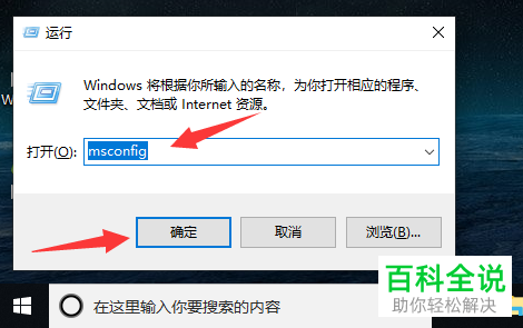 2. 在运行窗口中输入“msconfig”后,点击“确定”