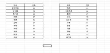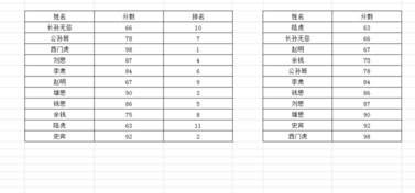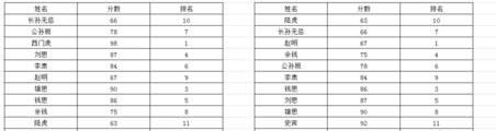 在第三步骤表格的右侧,再次画一张表格,也是姓名和分数两列,但是这个表格需要给分数排序,