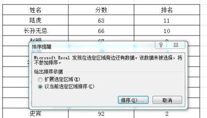 在右侧表格上方鼠标右键,找到”排序“,这时会弹出一个对话框,选择”以当前选定区域排序“,
