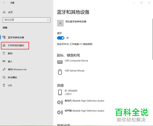 3. 第三步,在下图所示的设备页面中,点击页面左侧的打印机和扫描仪选项。