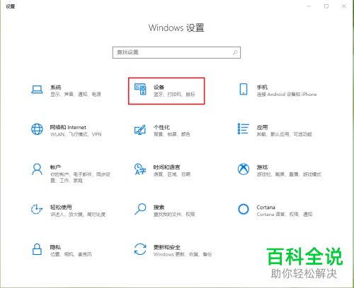 2. 第二步,来到下图所示的Windows设置页面后,点击红框中的设备选项。