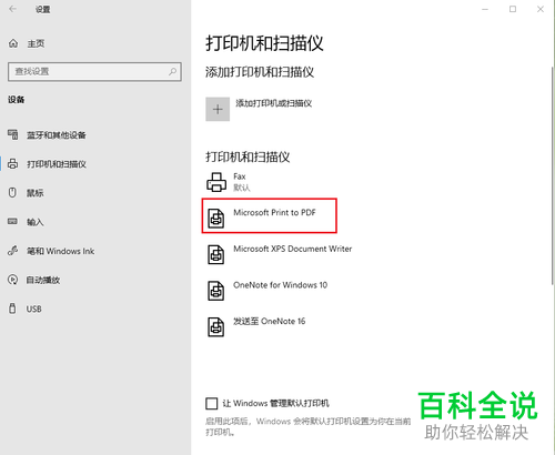 4. 第四步,我们可以看到如下图所示的页面,点击选择想要设置的打印机,小编选择了Microsoft print to pdf。