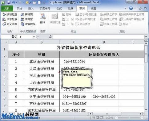 单元格批注就是用于说明单元格内容的说明性文字,可以帮助Excel工作表使用者了解该单元格的意义。在Excel2010工作表中可以添加单元格批注,操作步骤如下所述: 第1步,打开Excel2010工作表,选中需要添加批注的单元格。 第2步,切换至“审阅”功能区,在“批注”分组中单击“新建批注”按钮,如图1所示。