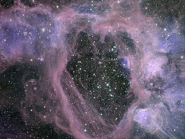 但一般情况下星云就是宇宙中物质密度分布最稀疏的天体系统所以如果星云内有大质量恒星的话,恒星本身发出的高能带电粒子,也就是恒星风,是会不断在星云内部清场的,,星云物质就都被吹到别的地方了,空洞也就产生了。