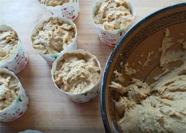 3.搅好的面糊直接放入纸杯中或者是碗中都可以,放入锅内,盖上盖子醒发20分钟左右,体积明显变大即可。