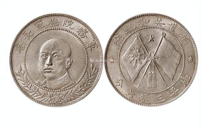 唐继尧的三钱六分双旗币以前来说也是很多藏友不看好的一种钱币,不过经过了这么久的时间慢慢的发现唐继尧的纪念币在收藏里面也是开始慢慢越来越受藏友关注,而且也是很多藏友比较喜欢收藏的一种银币,唐继尧的纪念币有金、银、铜三种材质的,其中银的双旗币正面就是唐继尧的正面头像,钱币上面有“军务院抚军长唐”的字样,钱币下面是嘉禾的图案花,背面中间是两面交叉的旗帜分别是铁血十八军旗和青天白日旗交叉的上方有一个五角星,钱币上面镌刻着“拥护共和纪念”下面是库平三钱六分的字样。这种双旗币现在也是比较受欢迎的一种银币之一。