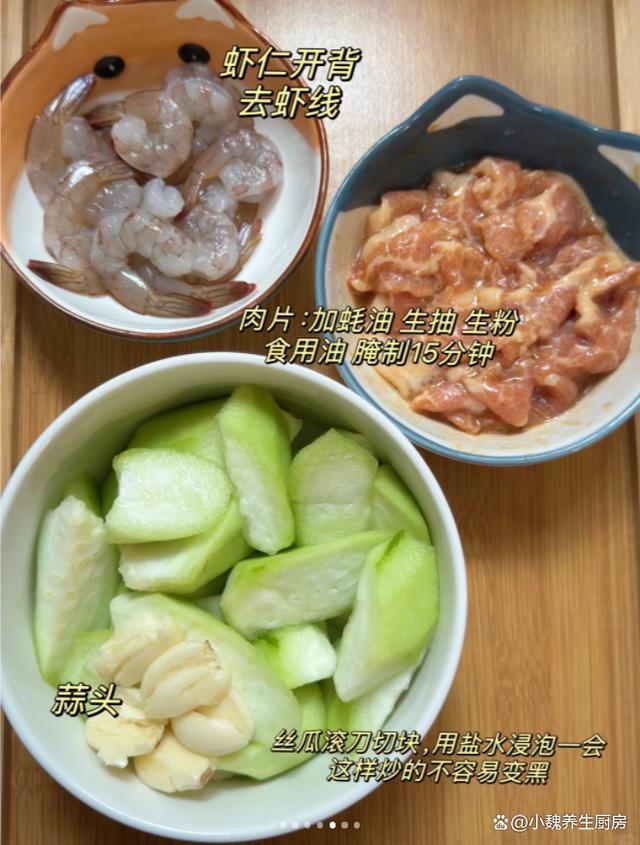 进入五月中旬,已经迈入夏季一段时间,能够感受到夏天的气息,天气已经上升到30度,虽然还没有进入炎热模式,但是已经开始预热了,南方的夏天非常痛苦,只能通过空调来降温,这个时候出现很多,身体的营养消化会更快,肌肤也容易缺水,这个时候需要多吃应季蔬菜,丝瓜绝对是不能缺少的。今天准备用丝瓜,虾仁和猪肉制作一道美食——丝瓜虾滑炒肉片,菜色非常好看,肉片非常鲜嫩,营养美味,解馋开胃,老人孩子都爱吃。很多人第一次吃这道丝瓜虾滑炒肉片吗?不如跟着小编看一看吧。夏季,宁可少吃鸡肉,也要多吃这菜,营养全面,应季而食好处多。  【丝瓜虾滑炒肉片的正确制作步骤】 准备一些食材:挑选新鲜猪肉里脊半斤(猪肉里脊是猪肉身上最嫩的部位,肉质鲜艳红润,非常有弹性,口感非常鲜嫩,是制作炒肉片的食材首选,需要我们提前腌制和去腥),少许料酒,少许食用油,生抽和蚝油少许,生粉或淀粉少许,选购新鲜大虾250克左右(大虾分为很多品种,一定要选择活虾,个头要大一些,虾肉才会很肥美,是这道菜肴的最佳选择),几片生姜,若干个大蒜头,新鲜丝瓜1-2条(丝瓜是一种高维生素C的蔬菜,鲜嫩清甜,荤素都能够搭配,夏季正是吃丝瓜的时候,帮助清热解暑,嫩肤美容,好处多多),冷水少许,少许食盐和胡椒粉,其他佐料。
