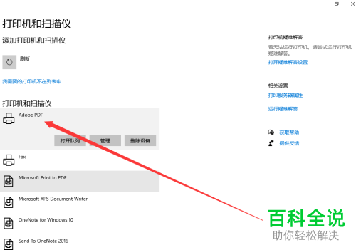 4. 第四步进入【设备】页面后,根据下图所示,点击左侧【打印机和扫描仪】选项。 5. 最后在右侧页面中,根据下图箭头所指,找到并点击【Adobe PDF】即可。 以上就是win10系统怎么找到Adobe PDF虚拟打印机的方法。 |