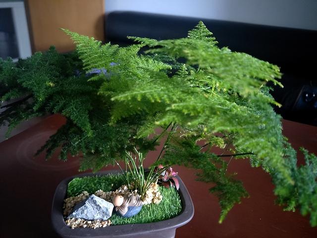 修剪之后,很快就萌发出新叶,但没多久,又全黄了,连续折腾几次,硬是就变“空盆”了。 当时,我是懵的。 好在文竹并不贵,连续养了好几盆,才算是有了一些养殖心得,养出状态来的文竹盆栽,真的不比一些盆景差!