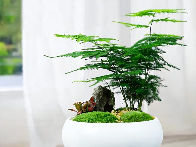 许多人要在自己的书房里放一盆花花草草,我说:“放一盆文竹!” 许多人都问,哪种盆景最廉价,我回答:“买一盆文竹!” 许多人都问我,什么植物适合在室内种植,我乐道:“养一盆文竹。”