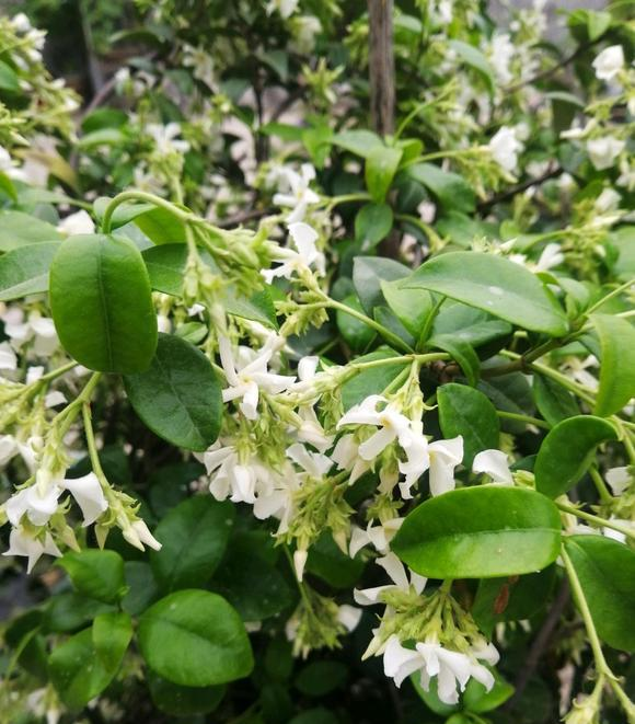 风车茉莉并不是茉莉花,只不过他的名字中有着茉莉这两个字,风车茉莉在我们山东本地也叫做盘龙香,属于一种爬藤植物,它的生长习性跟爬山虎有些相似,可以沿着墙壁攀爬生长,养殖风车茉莉的前提是必须要满足室外露天的环境。