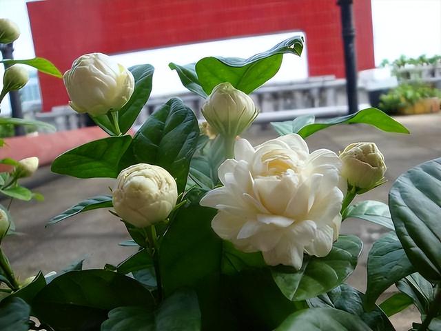 6、茉莉花 被誉为“晒不死”的茉莉,无疑是夏日鲜花中的佼佼者。许多花友反映,他们家的茉莉,不能长时间的阳光照射,放在阳台上,过不了几天,就会枯萎。 我就是想问问,你们如何浇灌?盆栽跟地栽不同,地栽是盛夏,又是烈日炎炎,地栽花花草草,哪怕是一两天不浇水,也不会有事,因为根须在土壤中,可以汲取到足够的水分。 而对于盆栽来说,一旦土壤变得干燥,那么它就没有地方吸水了,所以它就得靠水来维持自己的生命,而茉莉花却是喜欢水的,夏天的时候,最重要的是,如果不下雨的话,每天早上和晚上都要浇一次水。