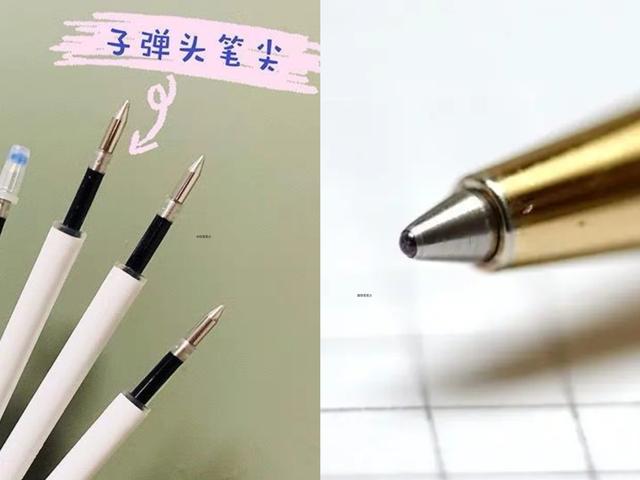笔头形状不同 中性笔的笔头分为子弹头、半针管和全针管,子弹头笔芯比较粗,最常使用的型号为0.5毫米,全针管是最常使用的型号,一般有0.25毫米的型号,半针管型号一般为0.35毫米和0.38毫米,圆珠笔分为油性和水性,油性笔头和水性笔头的直径都是由笔芯里的钢珠决定的,油性笔头常见的直径有1毫米、0.7毫米和0.5毫米,水性圆珠笔的笔头分为炮弹式和针管形状,总的来说油性圆珠笔使用的最广泛。