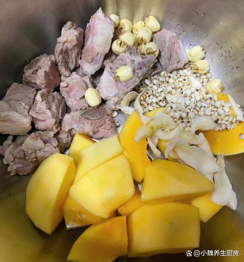 时间从春季到夏季,季节更替,从暖暖和的春天,马上要迎来炎热的夏天,夏天容易出汗多,经常出现中暑和上火的情况,如果不按时吃饭,及时补充营养,身体会特别虚弱无力,从而引发很多疾病。很多人只知道春季进补,其实夏季也是非常重要的进补好时机,不仅仅要多吃肉类和蔬菜,还可以多喝这款靓汤——青木瓜莲子薏米排骨汤,排骨和这几样炖一锅,汤品很鲜美,营养更好消化,不懂吃可惜了。很多人第一次听说这款青木瓜莲子薏米排骨汤,跟着小编来详细了解下吧。夏季多喝汤,一年都不慌!建议要多喝这汤,补足营养,舒服度夏。  【青木瓜莲子薏米排骨汤的正确做法】 准备一些食材:选购一个青木瓜(木瓜是一种热带的水果,富含大量的维生素和果酸,吃起来特别清甜可口,木瓜既可以直接生吃,用来煲汤会让营养更容易消化,汤品会非常鲜美),干莲子25克左右,百合15克左右,薏米一小把(薏米是祛湿的良方,煲汤的时候加入一些,能够赶走身体的湿毒),选购新鲜排骨400克左右(排骨是猪骨的品种之一,价格要贵一些,烹饪方法更多一些,也很适合拿来煲汤),冷水和温水少许,几勺料酒,生姜少许,少许食盐,半勺白胡椒粉,若干根香葱,其他。 正确制作过程: 1:提前选购好青木瓜,莲子,百合,薏米和排骨等食材,先把薏米用清水淘洗,然后将薏米泡发几个小时,泡好后控干水分。2:将干百合用温水泡发好,撕掉一层半透明的物质,干莲子用温水泡发几个小时,记得挑出里面的莲子心。 3:将青木瓜的外皮去皮,从中间切开,去掉木瓜的果核,切成大小相同的块状,生姜切成一些片状,备用。4:将新鲜排骨剁成小块,用清水冲洗掉血水,或者用葱姜水浸泡,洗净控干表面的水分。 5:另外起锅以后,倒入洗干净的排骨,加上适量冷水,放入葱段和姜片,调入一丢丢料酒,把排骨焯水去腥,然后捞出用温水冲洗掉浮沫即可,准备好其他的食材,开始烹饪这道青木瓜莲子薏米排骨汤。 6:准备好煲汤的汤锅,锅中放入焯水好的排骨和姜片,放入青木瓜,百合,莲子和薏米,加上适量冷水,盖上锅盖大火煮开。 来源: www.ws46.com 7:转小火煮70分钟,一定要掌握好火候,等到全部食材都煮熟,加上胡椒粉和食盐调味,煮至入味即可,这款青木瓜莲子薏米排骨汤就做好了。 青木瓜莲子薏米排骨汤是一款很受欢迎的汤品,选用青木瓜,莲子,百合,薏米和排骨制作而成,做法简单,营养又鲜美,祛湿健脾,静心安神,为夏季储备很多能量,早食早受益。 网友们,你们是否掌握这款青木瓜莲子薏米排骨汤的正确做法吗?(文中的配图全部出自网络)