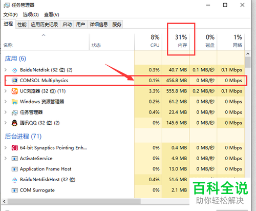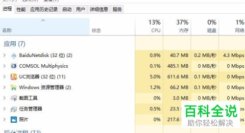2. 在任务管理器页面,找到内存占用比较大的软件或游戏,选择结束进程。