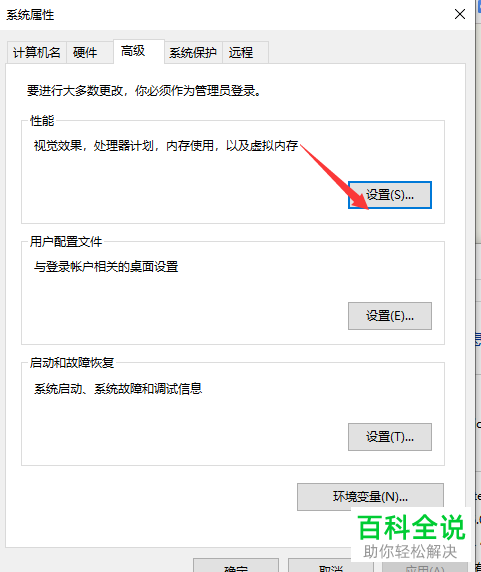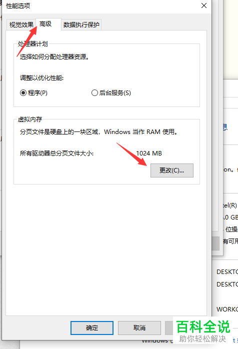 4. 然后在打开的窗口中,切换到【高级】选项下,点击【设置】,在打开的【性能选项】窗口中,切换到【高级】下,然后点击【更改】,进行设置即可。