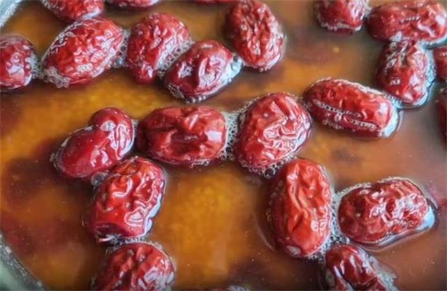 2.准备一个铁盆或者是铁的模具,这样导热更好,容器底部先铺上一层红枣和干果类。
