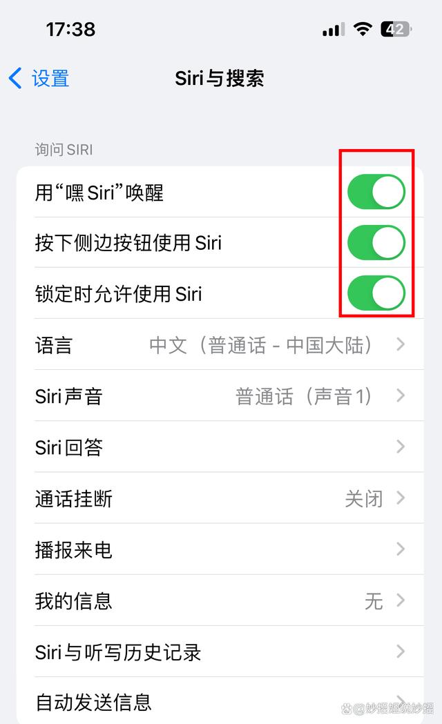 当我们按系统设置好唤醒词后,我们再返回“Siri与搜索”页面,还要将下方锁定时允许使用Siri的开关打开。这样在我们找不到手机的情况下,就可以直接大声呼唤:嘿Siri你在哪里。这样手机在接收到你的语音时,就会回复我在这里,我们也就能轻松找到手机的所在位置了。