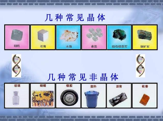 定义不同: 晶体是内部质点在三维空间成周期性重复排列的固体,具有长程有序,并成周期性重复排列。非晶体是内部质点在三维空间不成周期性重复排列的固体,具有近程有序,但不具有长程有序。 常见类型不同: 晶体:海波、冰、石英、水晶、金刚石、食盐、明矾、金属。 非晶体:松香、玻璃、石蜡、沥青。 特点不同: 晶体 自然凝结的、不受外界干扰而形成的晶体拥有整齐规则的几何外形,即晶体的自范性。晶体可以使X光发生有规律的衍射。宏观上能否产生X光衍射现象,是实验上判定某物质是不是晶体的主要方法。晶体相对应的晶面角相等,称为晶面角守恒。 非晶体 非晶体又称无定形体内部原子或分子的排列呈现杂乱无章的分布状态的固体称为非晶体。 如玻璃、沥青、松香、塑料、石蜡、橡胶等。非晶态固体包括非晶态电介质、非晶态半导体、非晶态金属。它们有特殊的物理、化学性质。 自范性不同: 晶体有自范性,非晶体没有自范性。自范性指在适当的条件下可以自发地形成几何多面体的性质。 均一性不同: 晶体具有均一,非晶体不具有均一性。均一性是指晶体整体内部质点的周期性重复排列而形成的宏观意义上的各部分性质相同,如水晶各个部位的相对密度、膨胀系数、热导率都相同。 排列不同: 晶体是内部质点在三维空间成周期性重复排列的固体,具有长程有序,并成周期性重复排列。非晶体是内部质点在三维空间不成周期性重复排列的固体,具有近程有序,但不具有长程有序。外形为无规则形状的固体。 向异性不同: 晶体有各向异性,非晶体多数是各向同性。 熔点不同: 晶体有固定的熔点,在熔化过程中,温度始终保持不变。非晶体无固定的熔点,它的熔化过程中温度随加热不断升高。 能否发生X-射线衍射不同: 晶体能发生X-射线衍射,非晶体不能发生X-射线衍射。