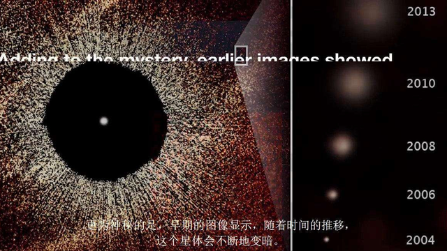在这个充满氢原子的环带的影响下,北落师门发出的光被环带散射,形成一圈红色的光晕,就好像《指环王》中邪恶的而这也是唯一一颗能直接在可见光波段拍摄到的系外行星,难度不亚于隔着太平洋拍摄蚊子腿上的细菌。 但这颗距离地球25光年的系外行星,在随后更加细致的观测过程中,却开始逐渐变得诡异起来,因为它消失了。
