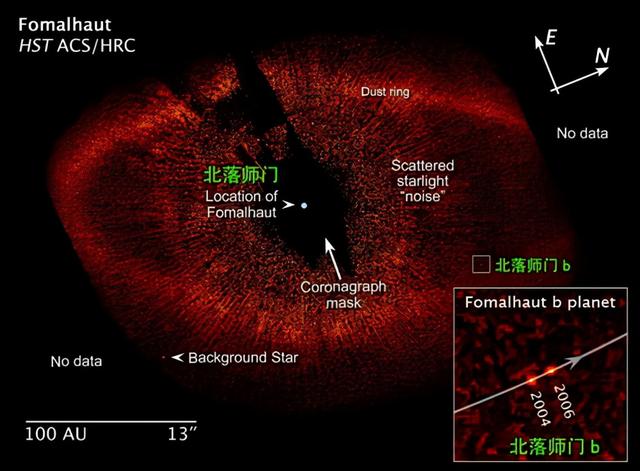 准确来说从2008年第一次捕捉到它开始,到2011年年底,北落师门b都处于消失状态,天文学界都开始怀疑当时哈勃望远镜的照片了,认为那颗小小的亮点并不是北落师门b,而是同方向上,距离更远的一颗恒星。
