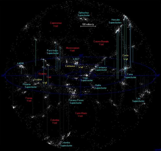 但宇宙中的星系们彼此之间还是很能抱团取暖的,在彼此引力场的作用下,或大或小的星系都聚拢在了一起,形成了一个个星系群,星系群又组成了星系团,星系团组成超星系团,超星系团彼此联合起来形成复合体,复合体再往上就是宇宙长城了,若干条长城盘根错节,成了我们现在看到的宇宙网状结构。