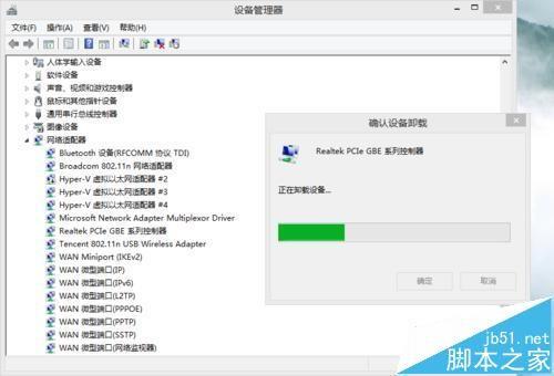 3、找到网络适配器,将其卸载(如果不知道那个,全部卸载也没问题),然后重启电脑?