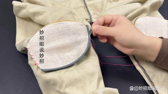 八、制作护膝。 我们剪下两个半圆形的部分,正好可以作为护膝。用针线将它们固定在秋裤膝盖处,就能为膝盖提供保护。对于年纪大的朋友来说,天气一冷膝盖就容易不舒服,穿上改造过的秋裤,就能给膝盖带来温暖和舒适。