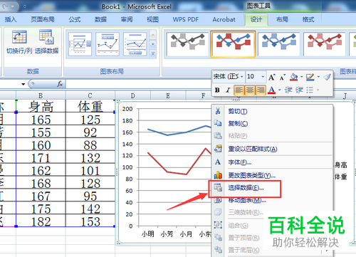 3. 然后在想要插入的图表上右键,在打开的菜单中,点击“选择数据”选项。