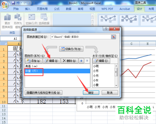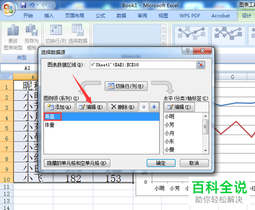 4. 在弹出的窗口中,将想要修改的图例文字选中,点击上方的“编辑”按钮。