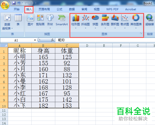 2. 将想要编辑的数据区域选中,点击上方的“插入”选项,然后在插入选项下,选择想要插入的图表样式。