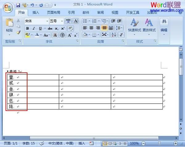 ①打开Word2007,绘制一个表格,如要把首列添加项目编号,那么选中整个首列。