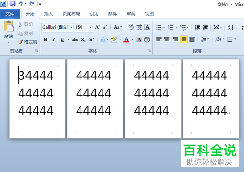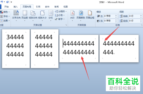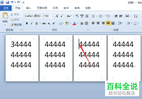 8.第八步,回到文档页面,可以看到第三第四页都变为了横向,点击第四页将光标置于第四页中。