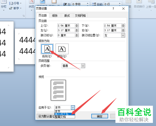 10. 第十步,点击选择纵向,再点击应用范围右侧的下拉箭头,选中插入点之后再点击确定按钮。