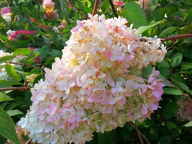 2、绣球花 所谓的绣球花,不是“无尽夏”之类的新品绣球,而是是一种名为“圆锥绣球”的绣球,现在这种“圆锥绣球”,已经开出了花,估计很快就会进入盛花期。 有兴趣的人,可以在自家的阳台上种植一些,这种绣球比较耐高温,花期也比较久,一般都会延续到秋季,甚至是初冬。 如今去花市购买,基本全是开放的,带着花苞,物有所值!