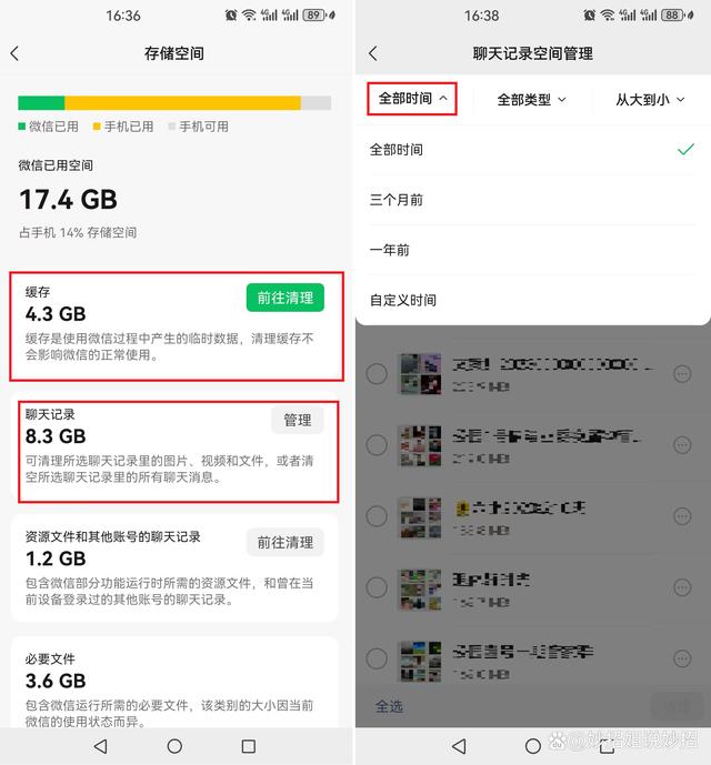 想要腾出空间,那么我们就可以选择将缓存数据全部清除,缓存它是我们使用微信过程中产生的临时数据,全部清除也不会影响微信的正常使用。如果还想继续释放内存的话,也可以将下方的聊天记录做针对性的删除,比如可以删除半年前的聊天记录,或者三个月前的聊天记录都可以,这样就大大的释放了手机空间,让手机不再内存不足了。