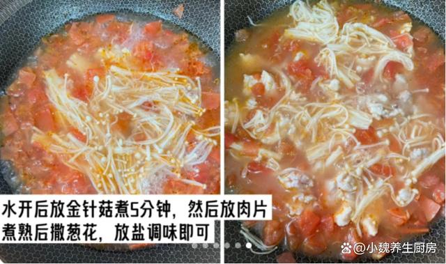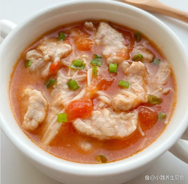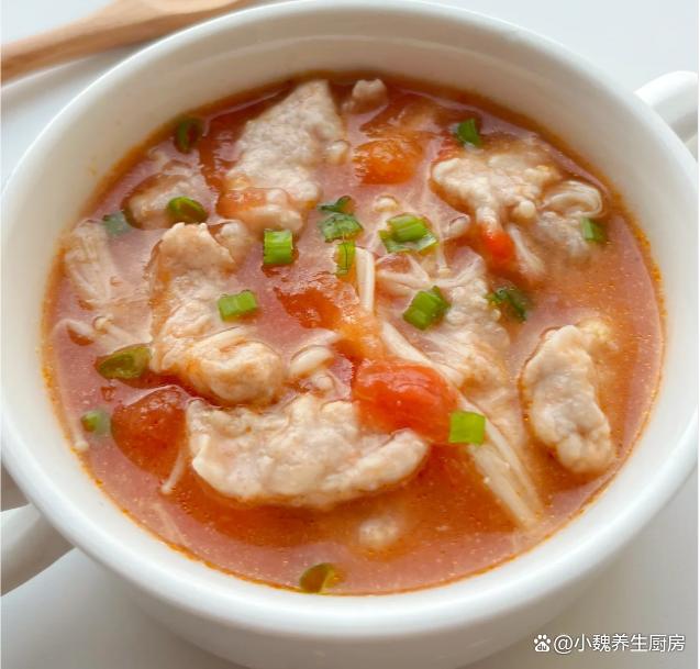 一晃眼就到了初夏,每年的五月份分为几种天气,雨天和晴天两种陌生,月初都是阴雨绵绵的,到了月末就开始出太阳,温度持续升高,会让人身体的能量消耗加快,新陈代谢加速,这个时候需要按时吃饭,补足营养。夏季以后,不仅仅要多吃蔬菜,还需要多喝各种汤品,比如说这款番茄金针菇滑肉汤,做法超级简单,汤品特别鲜美,别不懂吃。夏天,有钱没钱,平常要多喝这汤,营养又鲜美,补水嫩肤胃口好。