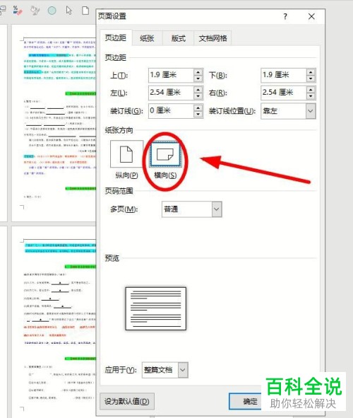 5.第五步,屏幕中出现了如图所示的“页面设置”界面,请点击“纸张方向”一栏的“横向”即可。