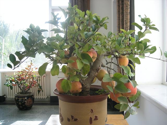 6、苹果树 寓意:苹果象征着和平,财富,节日,幸运等等。 一株矮小的苹果树,长在一个花盆里,树上结着几个硕大的苹果,第一眼看到它的时候,就感觉到了一丝喜欢,于是就将它带回了家。 这是第一次种植苹果树,生长速度很快,可以放在露台上,通风、施肥,这样才能结出更大更香的果实。 还有就是苹果的种类和味道,你也可以问问卖家,甚至可以让自己品尝一下,然后再买。 当然,这只是吃货们的看法,很多花友,都会在自己的房子里,种植一些低矮的苹果树,不仅仅是因为果实的美味,更多的是因为观赏性。