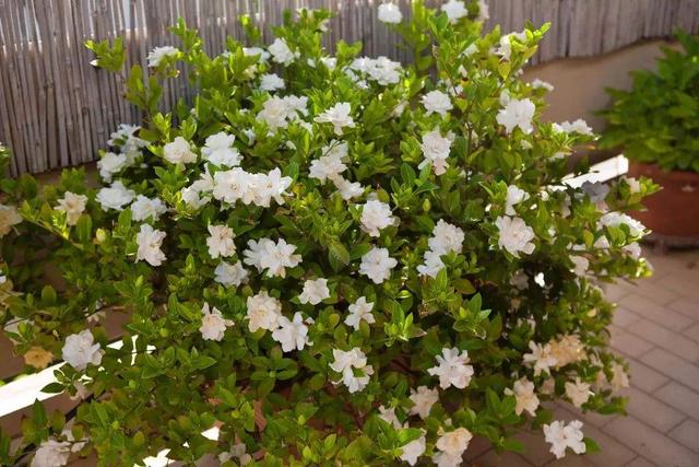 2、栀子花如果你的家里养着栀子花,就知道什么是喜水花卉了,它超级怕干,只要浇水不及时,叶子会马上萎蔫,如果是在花期,花苞都会焦枯脱落。在天气变热后,给栀子花浇水要及时,不然老叶片会发黄掉叶,再不浇,连新叶都会发黄掉落。很多时候,栀子花的叶片发黄,并不是缺什么硫酸亚铁,也不是盆土碱性过大,更不是缺肥,就是缺水了,干的。因此,到了高温季节,尤其是在它的花期,就把它当成“水牛”来养吧!