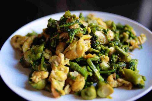 一、材料准备 刺五加:新鲜的刺五加叶适量,洗净后切成小段备用。注意在采摘时要选择嫩叶,口感更佳。 鸡蛋:3-4个,打入碗中,加入少许盐搅拌均匀。 调味料:适量盐、生抽、鸡精(可选)。 烹饪工具:炒锅、筷子或锅铲。 二、制作步骤