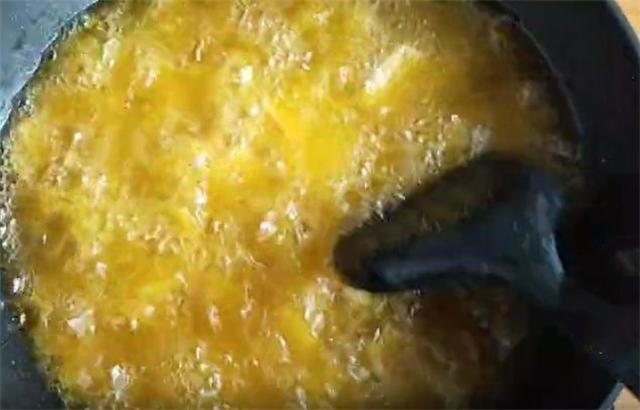 4.切成小块以后下锅炸,油温3到4成热下入,全程小火慢炸,一定不要着急,要不然很容易变糊,炸至表皮金黄,口感微微酥脆就要出锅。