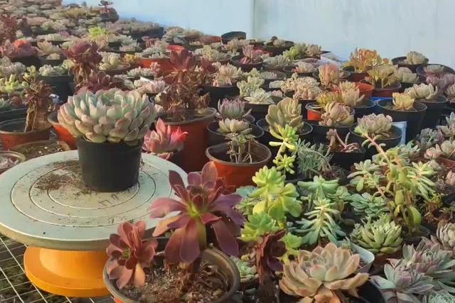 从在路边买了第一盆杜鹃花开始,阿姨的养花热情就被点燃了,不仅是在附近的小花店,路边摊买花,还去好远的花市上去买花。买回来的花很杂,买了不少,也养死了不少,剩下的,也活得够呛,但是有一种花卉,却生长得很好,那就是多肉。从那以后,阿姨就喜欢上了多肉植物,从一开始买各个品种的多肉植物,到自己学着叶插,砍头等等,到现在,都快二百盆了,真的就是一个人摸索养殖出来的。而且,自从养了多肉,和老公也有话讲了,老公好像也蛮喜欢多肉。
