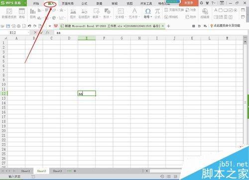 步骤 打开excel表格,如图,首先选择好我们要书写符号的单元格,然后在工具栏里点击“插入”。摘自: www.ws46.com