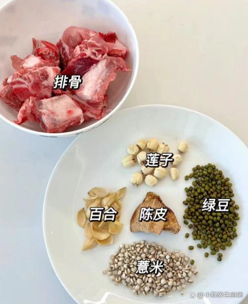 4月已经过完了,5月就悄悄来临了,五月第一周就是小长假,很多人都放假了,终于不用吃外卖了,可以在家研究菜谱,晚餐给家里人制作丰盛的菜肴。现在还处于春末阶段,天气还是非常舒服,一场雨水之后,气温就要回升了,炎热的天气让人心情焦虑,食欲会非常差,总是觉得全身没有劲。今天晚上准备用莲子,薏米,绿豆和排骨制作一款汤品——绿豆莲子陈皮排骨汤,汤品喝起来特别鲜美,补足营养,清热解暑,夏天一定别忘记喝它。你们是否喝过这款绿豆莲子陈皮排骨汤呢?不如跟着小编看一看吧。夏至前后,有钱没钱,别忘记喝这汤,清热泻火,舒服度过夏天。  【绿豆莲子陈皮排骨汤的制作技巧】 食材清单:选购一斤新鲜猪排骨(排骨是猪骨最优质的部位,肉质一定要非常鲜嫩,摸起来有弹性,闻起来无异味,排骨需要提前焯水去腥,这样炖出来的汤才好喝),选购优质绿豆50克,面粉几勺,少许清水,料酒少许,干莲子30克左右,干百合15克左右,薏米35克左右,陈皮一大块,冷水和温水少许,食盐和胡椒粉少许,生姜和香葱少许,其他。 详细制作过程: 步骤1:提前选购好绿豆,百合,干莲子和排骨等食材,先把香葱或大葱洗净,切成若干小段,生姜去皮切除片状,备用。步骤2:将排骨提前剁成块,排骨都剁成小块,排骨先用清水冲洗干净,放入到大一些的盆中。步骤3:盆中加上几勺面粉,用手反复揉搓,加上少许料酒和清水,面粉能够吸附油腻物质和脏东西,用清水冲洗干净即可。 步骤4:干莲子用冷水泡发十分钟,绿豆提前洗净,然后泡发30分钟,冷藏一晚上,这样绿豆很容易煮开花。 步骤5:百合和陈皮用温水泡发,洗净备用,薏米提前洗净,然后泡发几个小时,或者直接用热锅煎一会儿,备用。 步骤6:提前准备好汤锅,倒入洗净的排骨,沿着锅边淋入料酒,放入一些葱段和姜片,把排骨焯烫出来,逼出血腥物质即可。 www.ws46.com 步骤7:锅中放入焯水好的排骨,放入绿豆,陈皮,百合,莲子和排骨,一次性要多加一下水,这样汤品会更加浓郁。 步骤8:一定要掌握煲汤的火候,小火慢炖70分钟,出锅之前调入食盐和胡椒粉即可,焖煮一会儿几就可以了这款绿豆莲子陈皮排骨汤就可以食用了,喝起来舒服,清热泻火,好处多多。