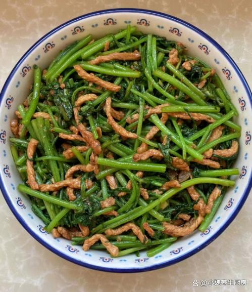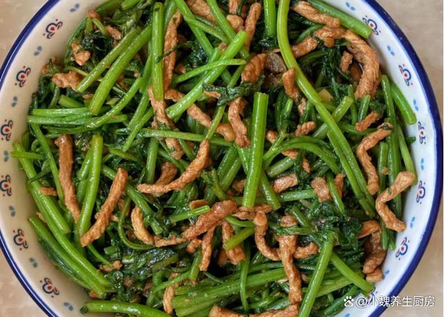 时间已经到了五月份,五一小长假开始了,大多数人都放假了,只有少部分还在坚持自己的工作,虽然很多人都放假了,但是由于很多地方都在下雨,还是别出门游玩,好好在家里放松一下,免得路上和街上都是人,好好在家里休息,晚上还可以享受美食。今天准备给家里人制作4菜一汤,今天分享其中一道时令菜肴——茼蒿菜炒肉丝,荤素搭配,鲜嫩美味,吃起来特别有食欲,不懂吃可惜了。五月到了,遇见这菜别瘦肉,解馋开胃,营养全面,睡眠更好了!  【茼蒿菜炒肉丝的详细做法】 准备一些食材:选购新鲜茼蒿菜一小把(茼蒿菜又叫菊花菜,是一种很受欢迎的绿色蔬菜,叶片闻起来非常香,富含大量草酸,叶酸,维生素和矿物质,不仅仅可以起到刮油的效果,还能改善失眠的情况,遇见一定要多吃一些),若干个大蒜头,生姜几片,少许食用油,辅食油少许,鸡精和味精少许,生抽和蚝油少许,半勺料酒,选购新鲜猪肉320克(个人建议选择里脊肉,里脊肉的脂肪含量少,肉质特别鲜艳红润,口感非常嫩滑,可以搭配各种蔬菜一起吃,总吃不腻),其他调味品。 详细制作步骤:第一步:提前选购好茼蒿菜,猪肉里脊和其他配菜,先把大蒜头剥掉外皮,切碎成一些细末,几片生姜也切成细末,备用。 第二步:将茼蒿菜掐掉黄叶和不新鲜的叶子,切掉根部一截,全部放在容器中,加上少许清水浸泡,去掉叶片的有害物质,反复冲洗干净,控干表面的水分,切成长度相同的段。第三步:把猪肉里脊清洗几遍,去掉多余的部位,猪肉一定要顺纹切片,然后切成一些肉丝,尽量要切细一些。 第四步:将瘦肉丝放入器皿中,放入一些姜丝和料酒,加上一勺玉米淀粉,加上食盐和胡椒粉,迅速用手抓一抓,放置半刻钟。 第五步:锅底中火烧热乎,冷锅热油烧热,滑入腌制入味的瘦肉丝,用锅铲迅速翻炒,将肉丝炒至变色,加上一层葱段,蒜末和姜末,翻炒均匀。