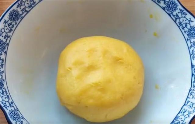 2.接下来准备100g清水,加入30到40克的白糖,这个依据个人口味来添加,加入两克小苏打,两克无铝泡打粉,然后顺着一个方向把它搅拌至起泡,把搅好的糖水倒入油面中,把它揉成一个柔软光滑的面团,大家可以看到由于我们之前用油,我把它搅散,这个时候的面团几乎是不含有面筋的,这样才容易开花,醒面十分钟左右。