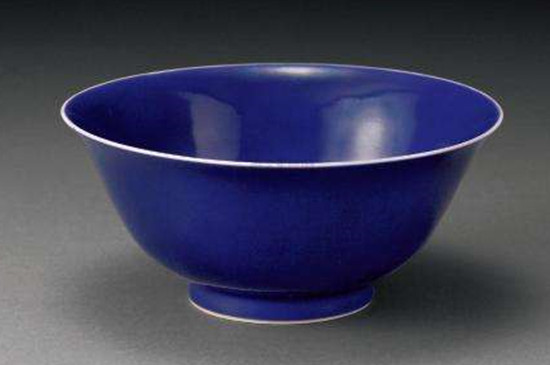 霁蓝釉瓷器的瓷胎呈灰白色或淡红色,上面有常见的铁锈斑点和火石红,整体胎质较为粗糙,但却感觉自然,给予人一种老熟老气之感。从胎底看去,霁蓝釉瓷器的胎底会因为积釉较厚的原因,呈紫黑色,足内无釉露胎。 |